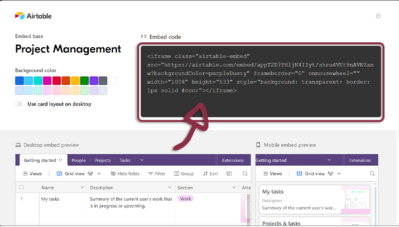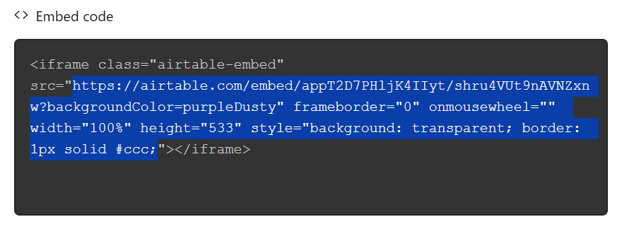 - You can retrieve Airtable URL from a column value, you just need to extract the link from the embed code as shown below.