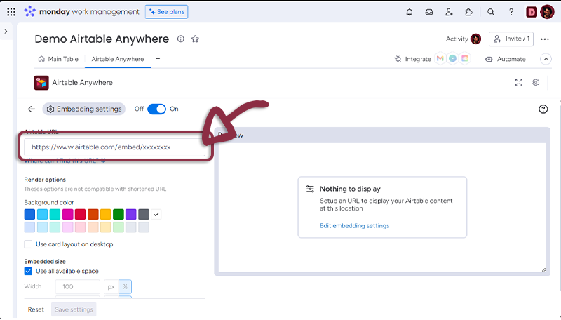 - Paste the link you copied from Airtable in the dedicated space