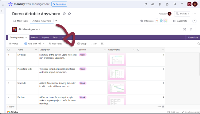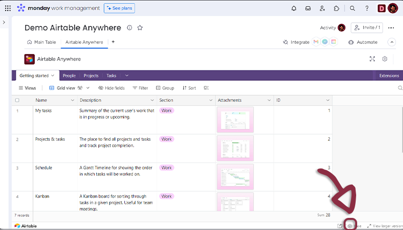 Once you have set-up your Table, just click the Save settings button to access to the Airtable document embedded in monday.com