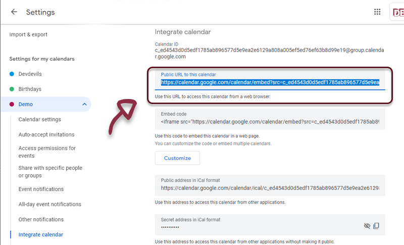 - Copy Public URL to this calendar