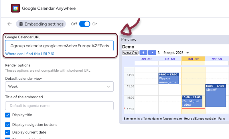 - Paste the link you copied from Google Calendar in the dedicated space