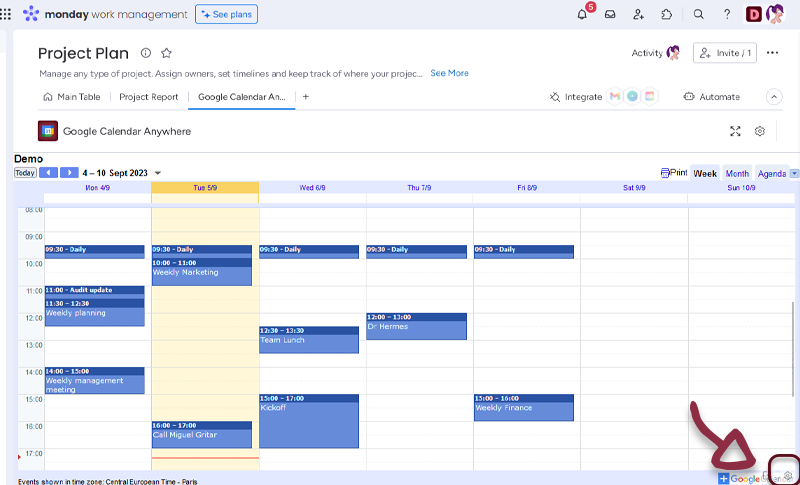The Google Calendar Anywhere Integration for monday.com is a tool that allows users to embed Google calendars directly into their monday.com Boards, Items, Dashboards or Workdocs. This integration streamlines collaboration, eliminates manual data entry, and allows users to customize the integration to their specific needs.