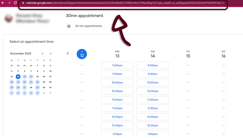 Now, copy the URl to this booking page