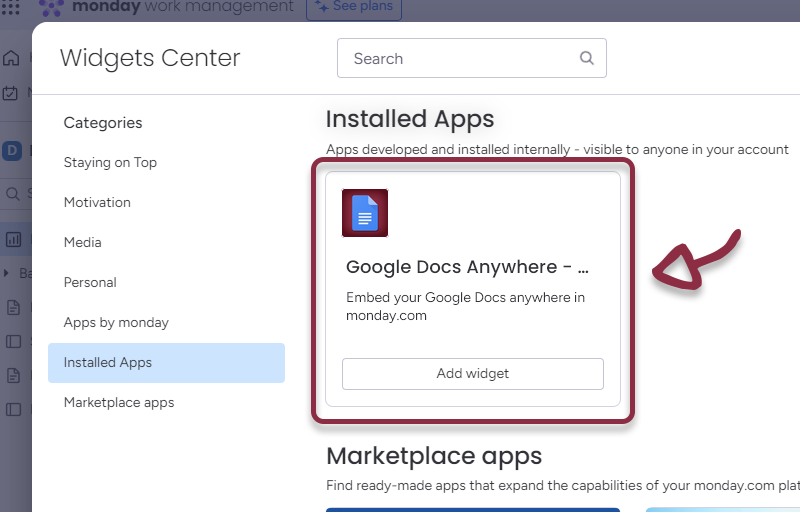 Click on the Google Docs Anywhere – Widget app