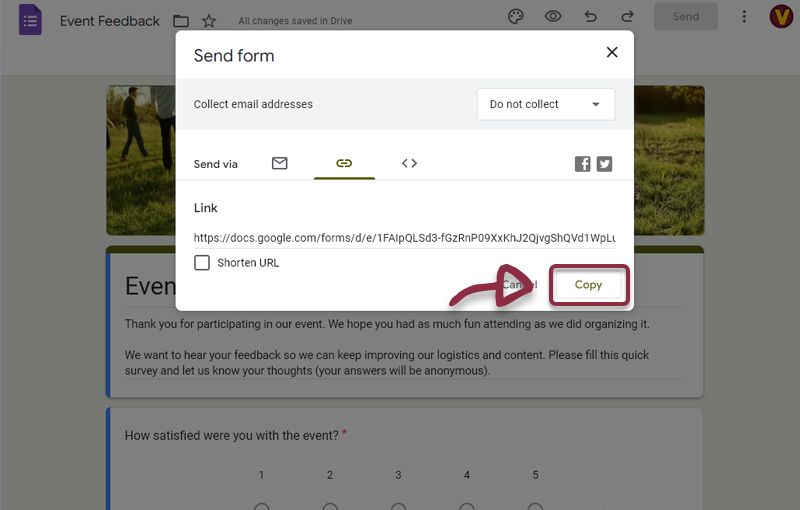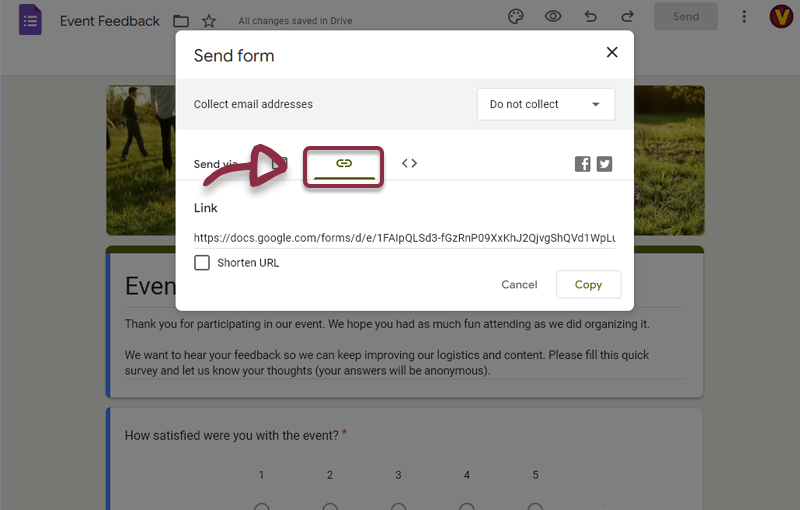 - On the Google Form, clic the Send Button