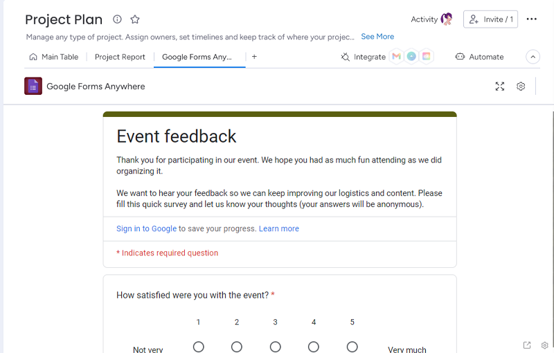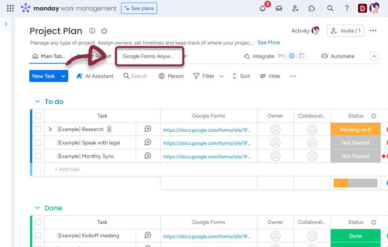 The Google Forms Anywhere Integration for monday.com is a tool that allows users to embed Google Forms directly into their monday.com Boards, Items, Dashboards or Workdocs. This integration streamlines collaboration, eliminates manual data entry, and allows users to customize the integration to their specific needs.