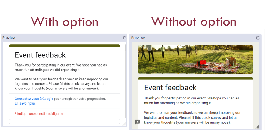 On Google Forms side