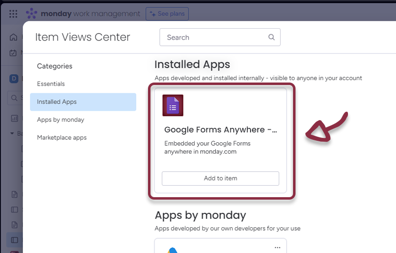 From your selected Board, select an item from the board to open the right panel, then, click on the + Button