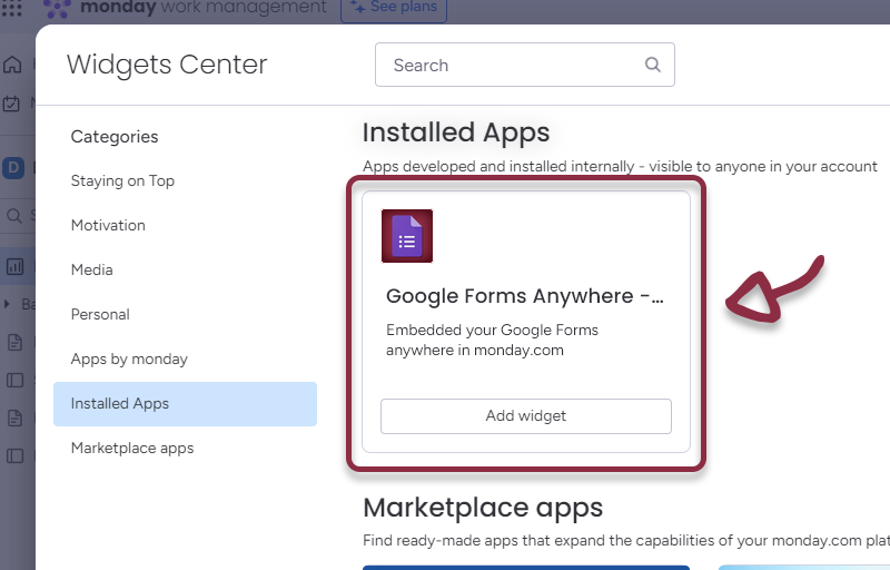 From your selected Dashboard, with edit permissions (you need to have the Owner rights), click on the Add Widget Button