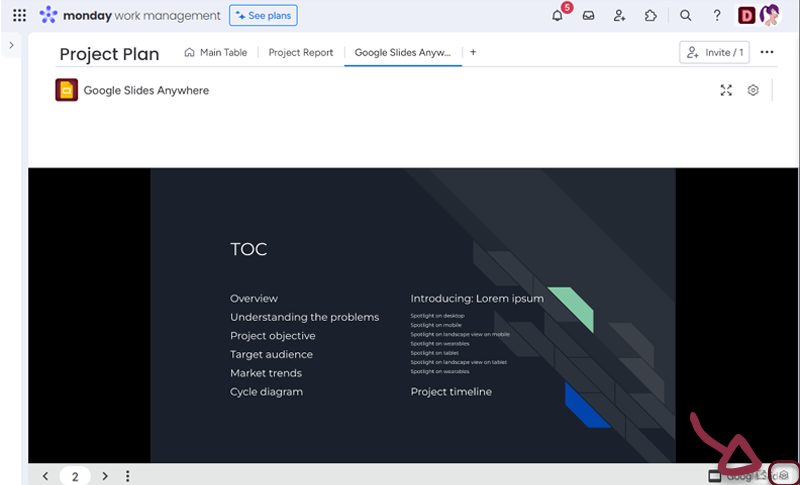 The Google Slides Anywhere Integration for monday.com is a tool that allows users to embed Google slides directly into their monday.com Boards, Items, Dashboards or Workdocs. This integration streamlines collaboration, eliminates manual data entry, and allows users to customize the integration to their specific needs.