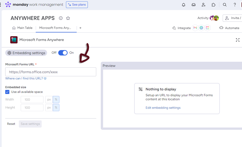 Once you have set-up your form, just click the Save settings button to access to the form embedded in monday.com