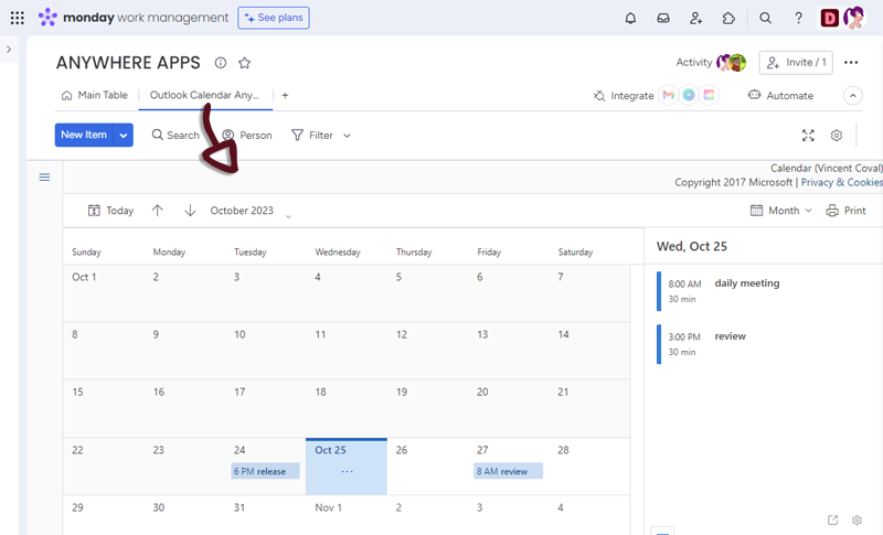 The Outlook Calendar Anywhere Integration for monday.com is a tool that allows users to embed Outlook Calendars directly into their monday.com Boards, Items, Dashboards or Workdocs. This integration streamlines collaboration, eliminates manual data entry, and allows users to customize the integration to their specific needs.