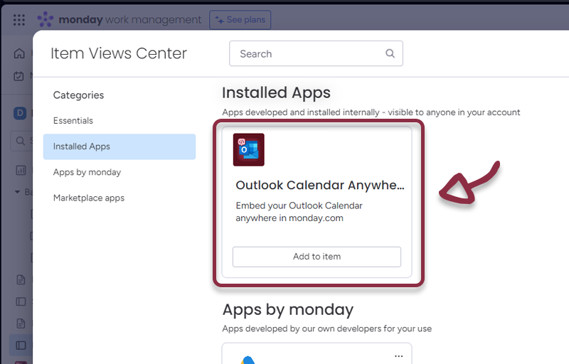 From your selected Board, select an item from the board to open the right panel, then, click on the + Button