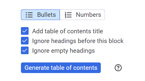 - Ignore empty headings: In case there are any empty heading blocks in the document, users can skip those in the table of contents.