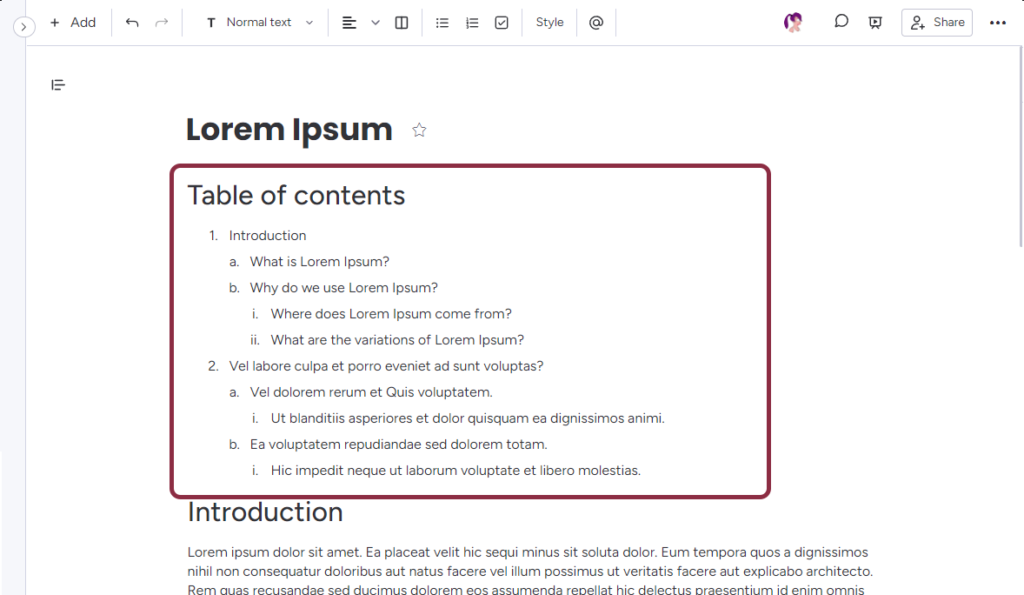 Once users have selected their desired settings, they can click on the Generate table of contents button to generate the table of contents. The application will automatically create a detailed table of contents that includes all headings in the document.