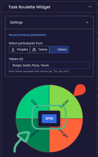 When your list is ready, your can collapse the settings menu or directly click on the Spin button located at the center of the Wheel of Fortune.